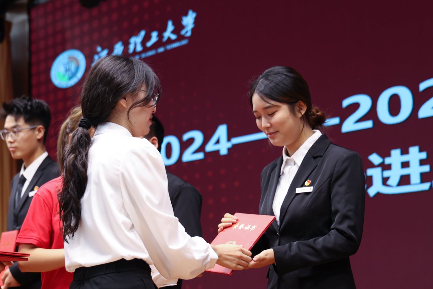 颁发2024——2025学年校级学生组织“先进工作者”代表荣誉证书。