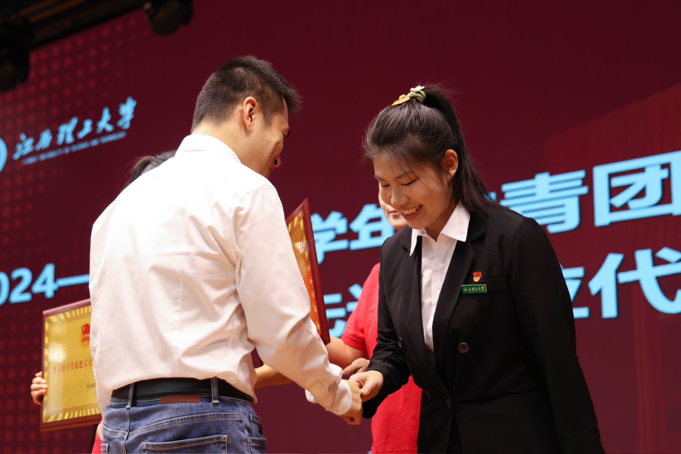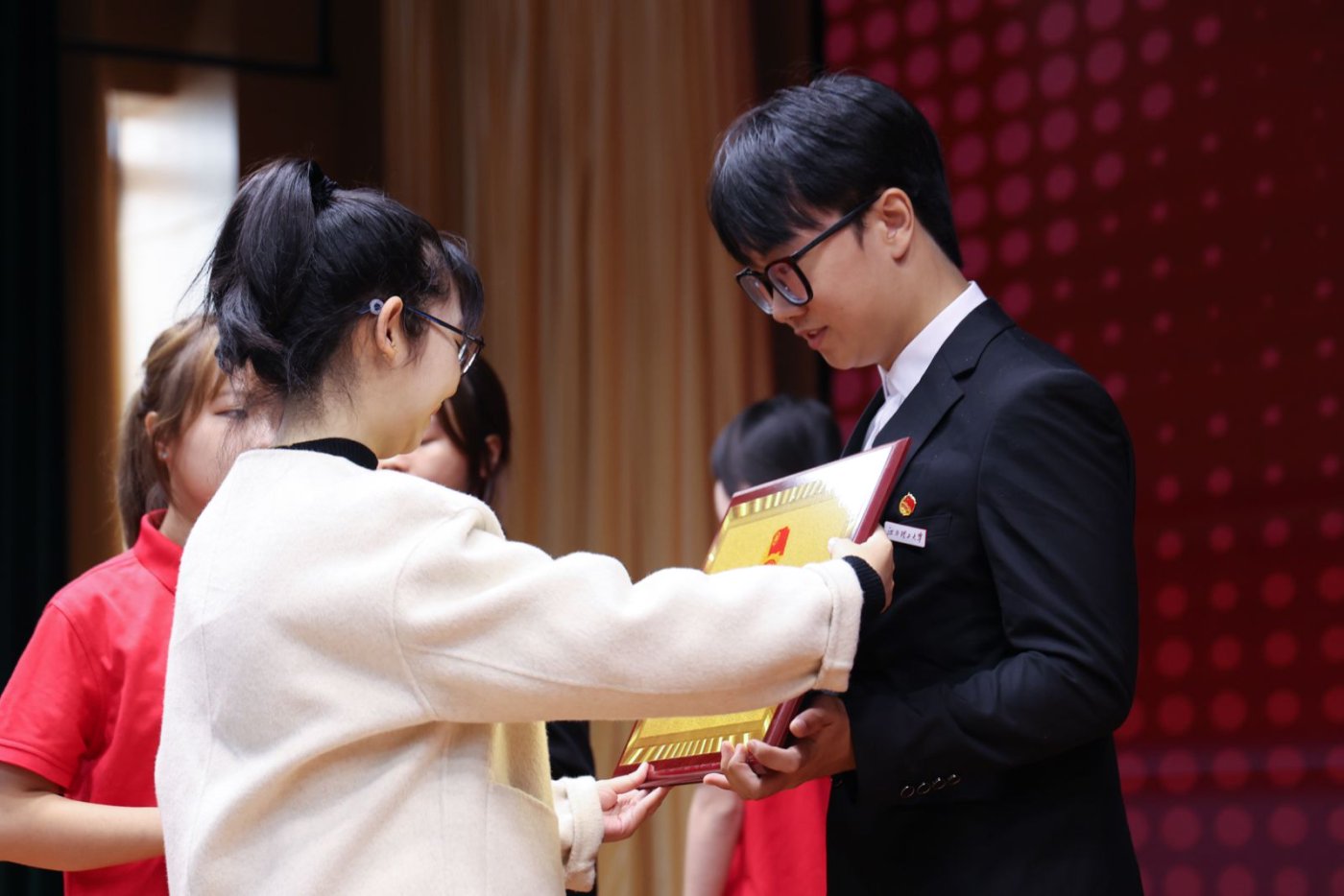 颁发2024——2025学年“优秀学生会”受表彰单位代表奖牌。