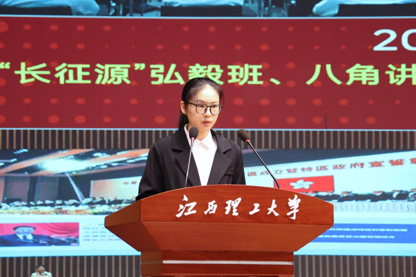 “优秀学生社团”代表、数学建模协会会长、电气工程与自动化学院自动化241班黎雨欣同学发言。
