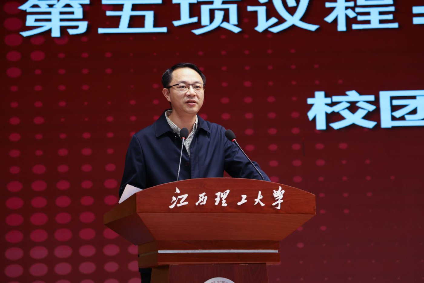 本网讯 10月25日上午11点,江西理工大学在三江校区(东园)三实楼多功能厅隆重召开校级学生组织建设工作暨集中换届会议,南昌校区、先进铜产业学院(鹰潭)、电子信息产业学院(信丰)设分会场并同步直播。校团委全体成员,各学院教师团干、团委(总支)学生副书记、学生会执行主席、团委组织部学生负责人、团委宣传部学生负责人,新一届校级学生组织全体成员参会,大会由校团委学生副书记于宝添主持。