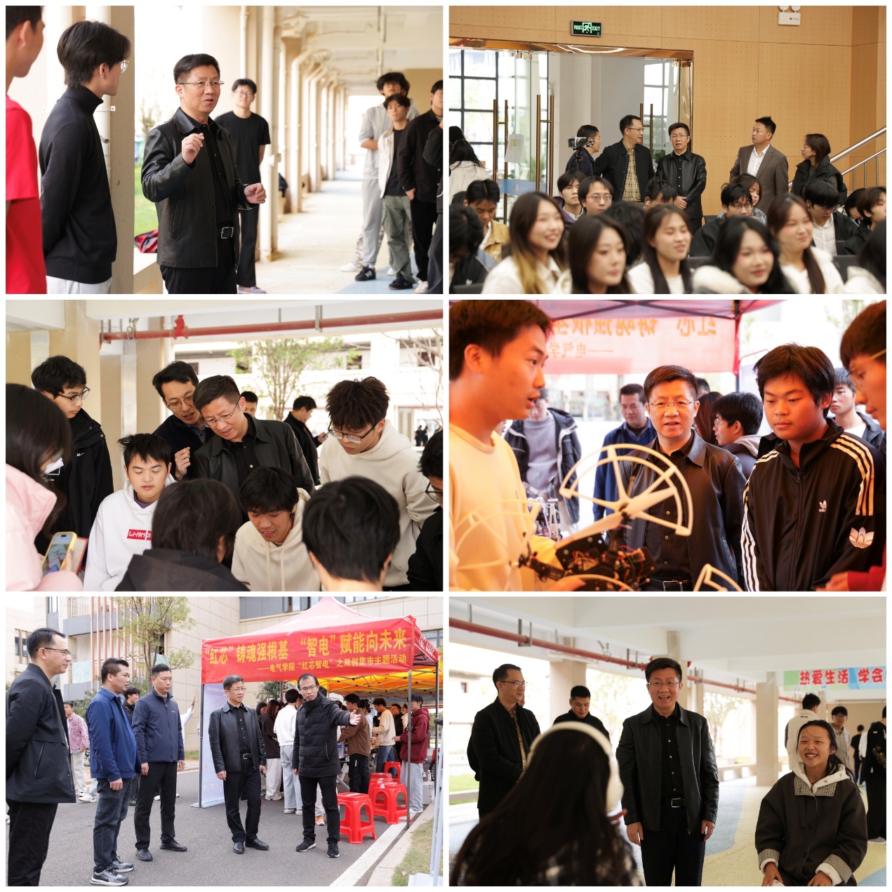 随后,徐书记走进冶金工程学院举办的冬季趣味游园会现场。这里欢声笑语不断,同学们正参加各类趣味运动和小游戏。徐书记也加入其中,与大家一起体验传统投壶的乐趣,现场呼吁更多同学“走出宿舍、加入游园”,现场气氛轻松热烈。在电气工程与自动化学院的“双创集市”上,徐书记逐一参观各项目展位,认真听取同学们的成果介绍,并对几个结合专业特色的实物作品表示赞赏。