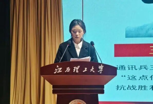 活动在原创情景剧《烽火青春——殊途同归》中拉开序幕。该剧以西南联大历史为背景,通过师生沉浸式演绎,生动展现了烽火岁月中的家国情怀。随后,人智241班团支书邓薇作《从抗战通讯兵到信息追梦人:一脉相承的精神力量》主题分享。她结合学院学科特色,回顾了抗战时期通讯兵在设备简陋、枪林弹雨中坚守岗位保障通信的英勇事迹,阐释了抗战精神在信息科技领域的时代内涵与传承脉络,号召信息学子以爱国情怀指引专业学习,将个人理想融入国家发展大局,以实际行动践行“勇担时代重任”的青春誓言。